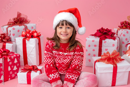 Girl in red sweater holding Christmas gifts