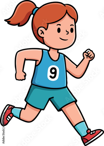 Girl running in blue sportswear with red shoes and number nine on jersey vector illustration