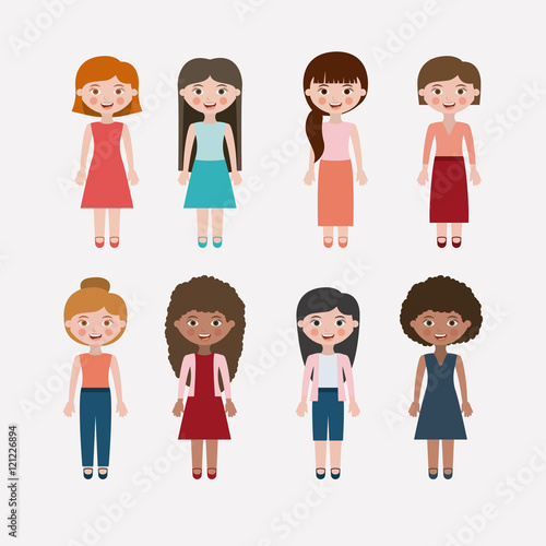 Girls cartoon. Kids childhood and people theme. Colorful design. Vector illustration