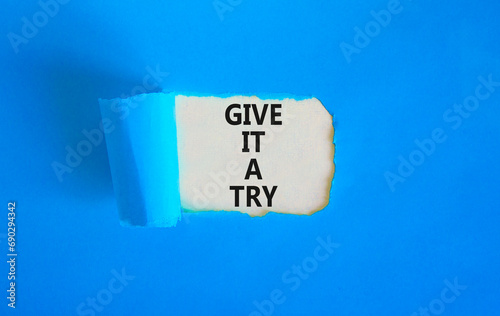 Give it a try symbol. Concept word Give it a try on beautiful white paper. Beautiful blue paper background. Business give it a try concept. Copy space.