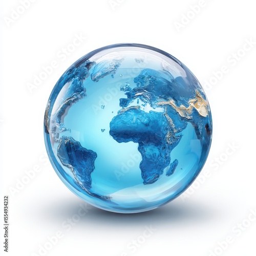 Glass globe Earth, continents, white background, global concept