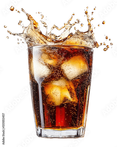 Glass of Cola with Splash Isolated Cut-Out PNG: A Fizzy, Refreshing Drink on transparent background