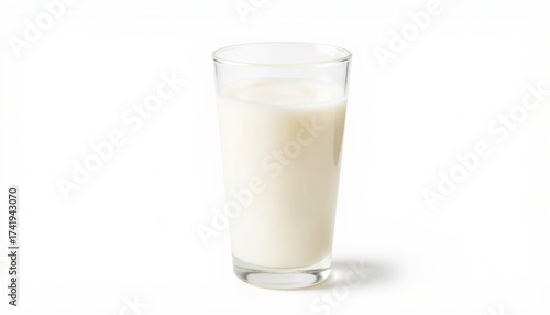 Glass of milk filled to the brim on white background