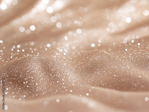 Glittering champagne fabric, bokeh background, studio shot, textile texture