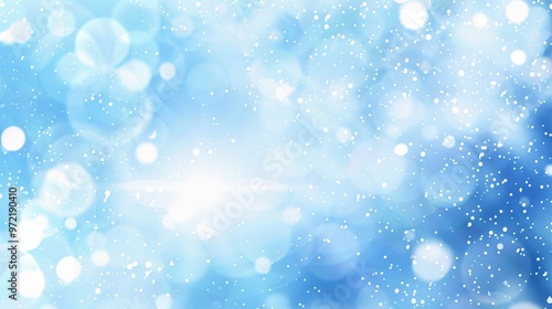 Glittering light blue particles and shining stage lights on abstract bokeh background
