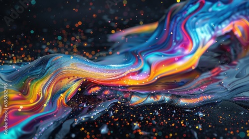 Glittering metallic liquid splashing in dark space, futuristic concept
