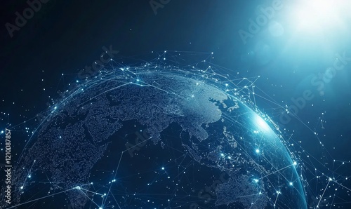 Global International Connectivity Background, Connection lines Around Earth Globe, Futuristic Technology Theme Background with Light Effect, Generative AI