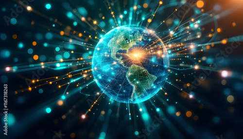 Global Network, Connected World Technology, World Connectivity, Data Network Visualization, Global Communication, Digital Earth Network