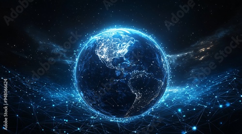 Global Network Connectivity Concept with Earth and Stars