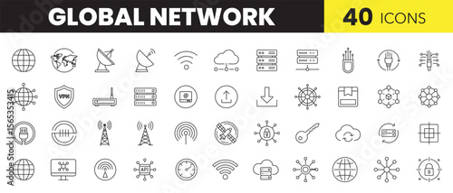 Global Network Infrastructure – Flat Line Icon Set