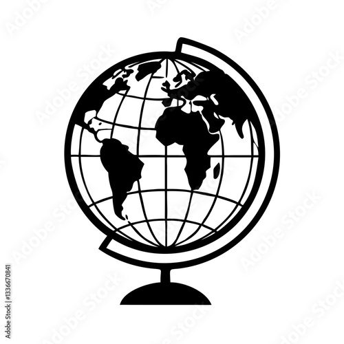 Globe icon in black and white style, symbolizing education and travel