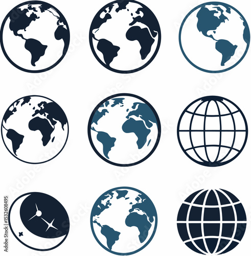 Globe icons set world map graphics design elements