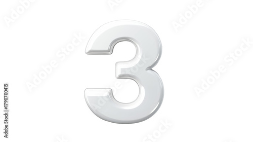 Glossy 3D Number Three on Transparent Background