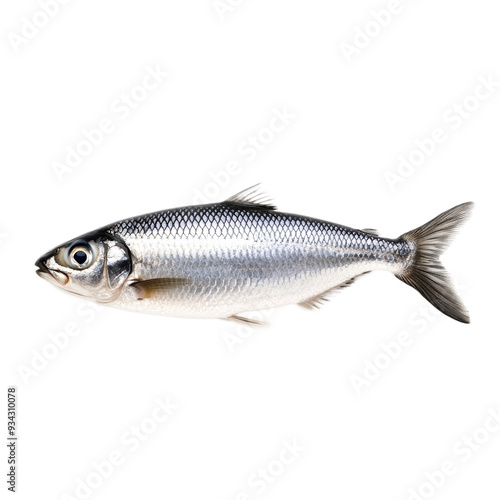 Glossy herring fish with silver scales and a streamlined shape isolated on transparent background