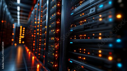 Glossy Server Racks in Modern Data Center with Copy Space for AI Business Tech Advertisements