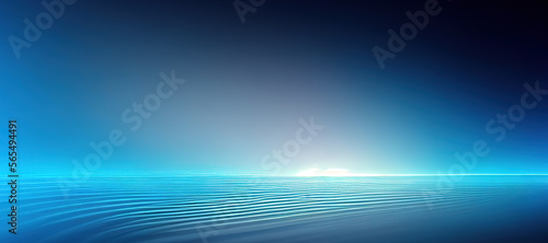 glowing blue sea water on blue gradation background with Generative AI Technology