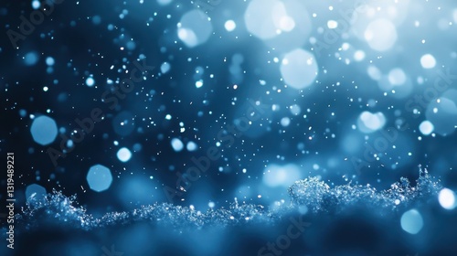 Glowing bokeh droplets abstract blue background digital art soft lighting close-up view visual serenity