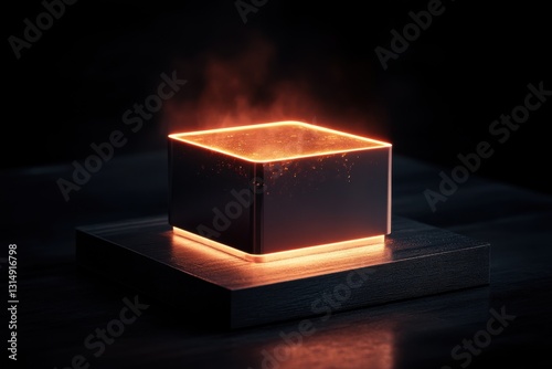 Glowing cube with illuminated edges smoke effect
