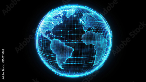 glowing digital globe with blue gridlines, representing global connectivity and technology
