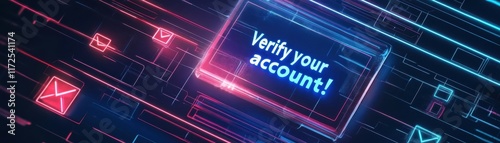 Glowing Digital Warning Verify Your Account Surrounded by Cybersecurity Symbols
