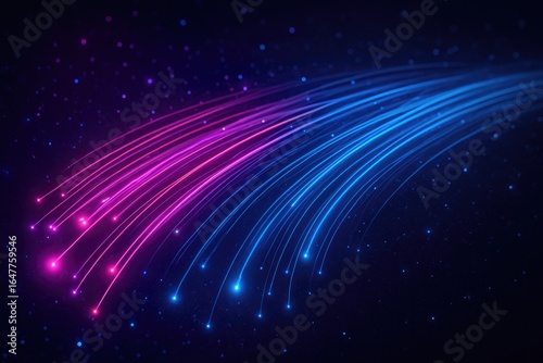 Glowing Fiber Optic Strands in Blue and Purple Against a Starry Background fiber optics