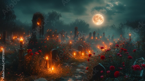 Glowing Graves: A Halloween Nighttime Scene Generative AI