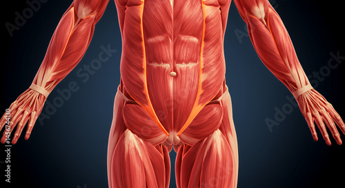 Glowing Human Muscular System 3D Rendering: Detailed Anatomy Visualization