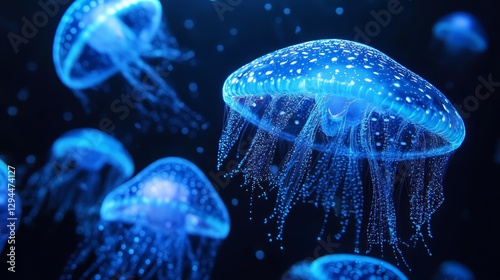 Glowing Jellyfish in the Deep Sea, A Mesmerizing Underwater Display