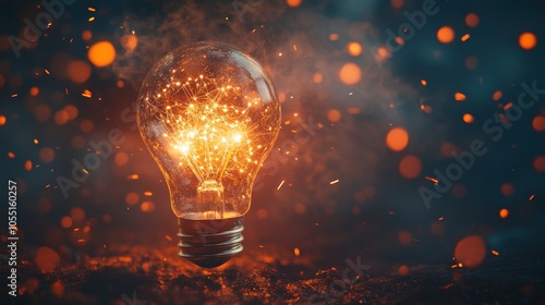 Glowing light bulb slowly dimming, symbolizing the gradual cognitive decline in Alzheimer's, neurons represented as fading sparks