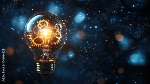Glowing Light Bulb with Gears and Sparkles