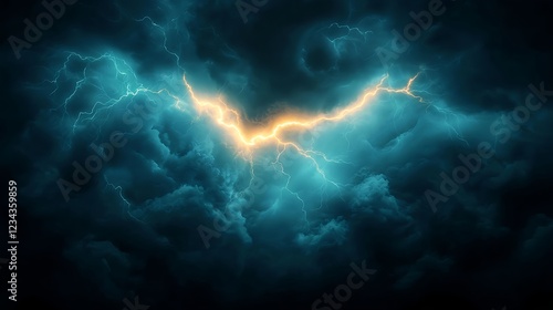 Glowing Lightning Strike Through Dark Clouds