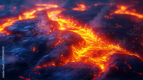 Glowing molten lava flow with intense fiery texture and dramatic energy