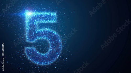 Glowing particle number five on dark blue background.