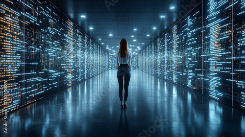 glowing silhouette of a woman in an open back dress stands in a radiant 3D space multiverse galaxy symbolizing a digital journey through realms of energy matter and endless possibilities
