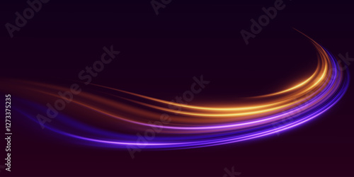 Glowing vortex of a curve, light trail of a line. Neon swirl and speed effect.