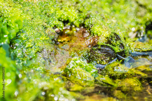 Glued sea shells on the rocks