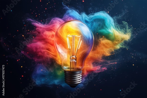 Glühbirnen mit Regenbogenfarben, Rauch und Wassereffekten