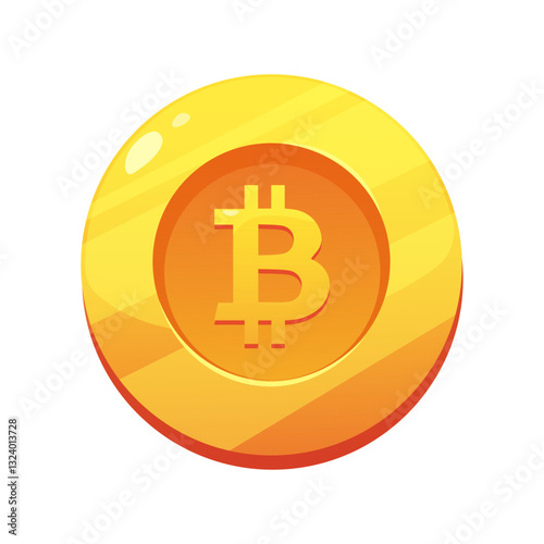 Gold cartoon coin with bitcoin sign. Cryptocurrency, crypto coin isolated. Vector illustration