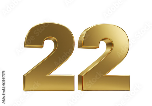 Golden 3D Rendered Number 22 Isolated On Transparent Background
