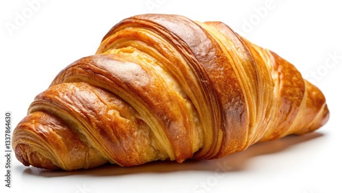 Golden Brown Croissant: Delicious French Pastry, Bakery Breakfast Food, Isolated White Background