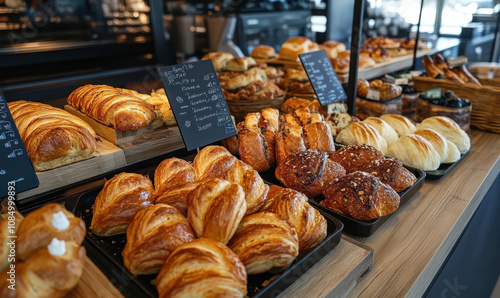 Golden brown pastries displayed in bakery inviting, delicious aroma