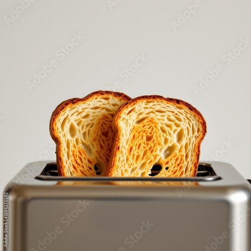 Golden Brown Toast Slices Rising from a Modern Stainless Steel Toaster on a Neutral Background