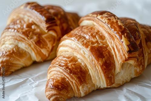 Golden Butter Croissants Illuminated by Morning Light - A Double Delight