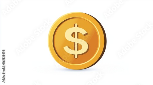 Golden Coin with Dollar Sign Symbolizing Wealth and Financial Success, Isolated on White Background for Use in Financial and Economic Concepts Images