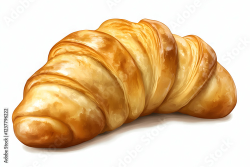 Golden Croissant Bakery Pastry Food Isolated