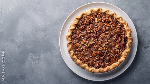 Golden Crust Nut Pie with Rich Filling on Minimal Grey Backdrop