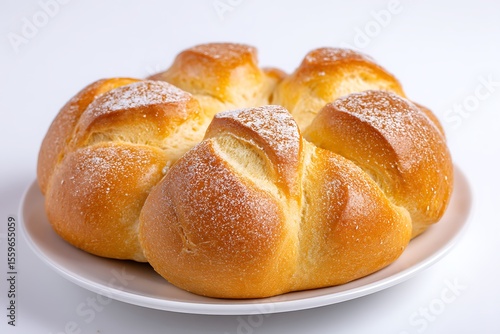 Golden Crusty Bread: A delectable round loaf of crusty bread, baked to perfection, sits on a plate. Its golden brown crust and soft interior suggest a delightful taste and aroma.