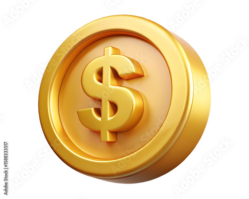 Golden Dollar Coin Illustration Symbolizing Wealth and Prosperity in Financial Transactions