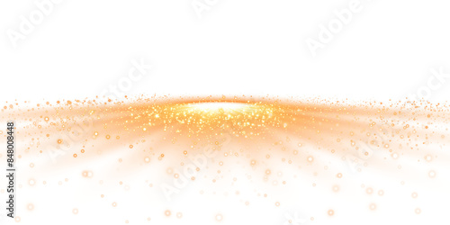 Golden dust, sparks and golden stars shine with special light. Trace of speed lines. Christmas light effect. Sparkling magic dust particles. PNG.