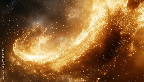 Golden Flames And Cosmic Swirl With Space Dust And Star On The Black Background, 3D Illustration.